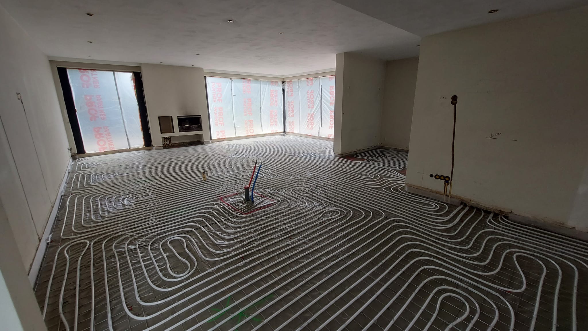Bij Frinsu combineren wij vloerverwarming vaak met isolatiebeton. Dit zorgt niet alleen voor een goede isolatie van de vloer, maar ook voor een stabiele basis. De vloerverwarmingsbuizen worden in de dekvloer perfect geïntegreerd worden. Het resultaat: een duurzame en comfortabele vloeroplossing die voldoet aan de eisen van vandaag én morgen.