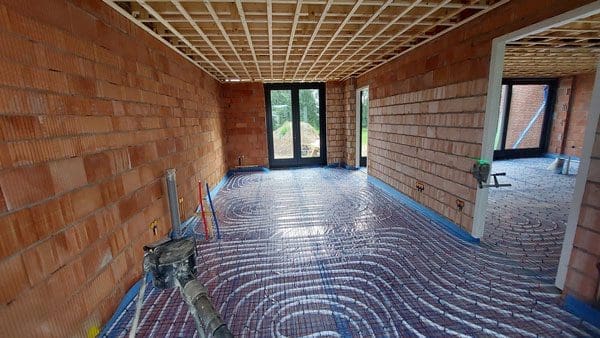 Na het isoleren van de vloer wordt deze direct voorzien van vloerverwarming en koeling. Het systeem bestaat uit een netwerk van leidingen die over de gehele vloer worden verspreid. Deze leidingen zijn de bron van warmte en koeling en zorgen voor een gelijkmatige temperatuurverdeling in de ruimte. Hierdoor heb je geen last van onbehagelijke plekken in je kamer.